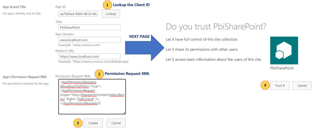 And now you can try accessing your ‘SharePoint App Registration URL’ again and it will take you to the setup page shown below: