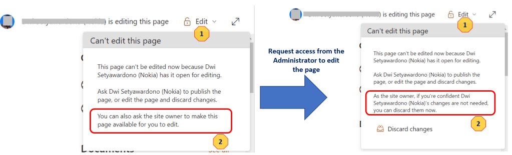 And now you can access the page from the process described above, but sometimes you may still need to ask the administrator to make it available for you to edit, as shown in the picture below: