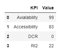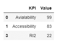 'KPI': ['Avialability', 'Accessibility', 'DCR', 'RI2'],